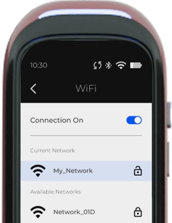 SLYDER Pro connects over Wi-Fi and Bluetooth, syncing settings, session history, and stats to the web dashboard and mobile app. Your preferences stay on the device.